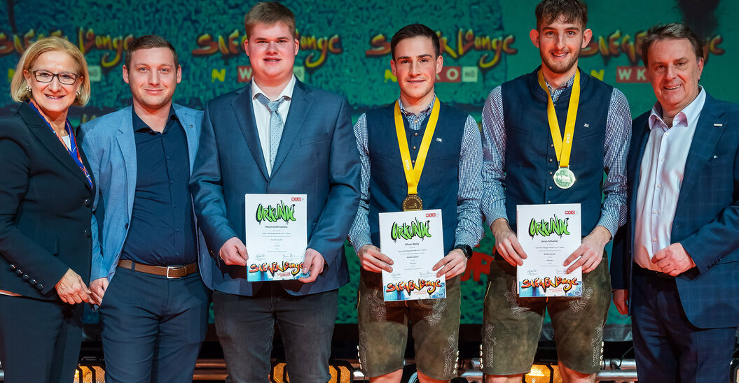 Die beiden Weltmeister im Betonbau Oliver Waily und Jonas Schulner sowie Sandro Rossmanith, Gewinner des Bundeslehrlingswettbewerb der Zimmerer wurden bei der WKNÖ-Siegerlounge unter dem Motto „We are Future“ von Landeshauptfrau Johanna Mikl-Leitner und WKNÖ-Präsident Wolfgang Ecker prämiert.