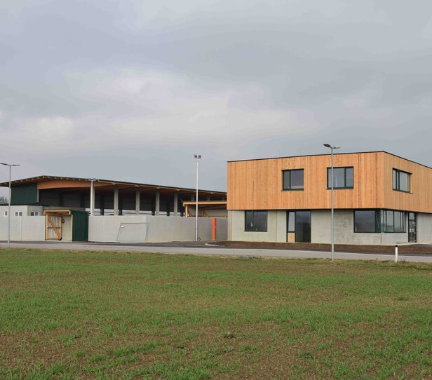 - Vier getrennte Bauteile (Sortierhalle, Lagerhalle, Grünschnittüberdachung und Tierkadaverüberdachung)