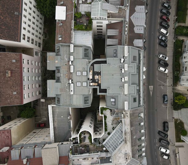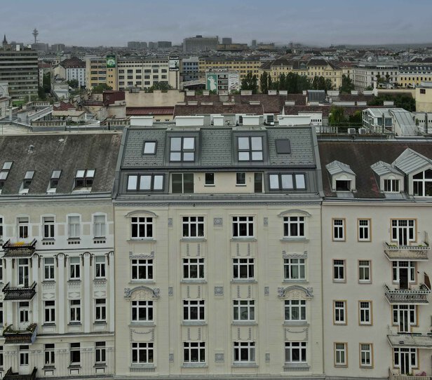 Zweigeschoßiger Dachgeschoßausbau in Holzriegelbauweise mit Stahltragkonstruktion.