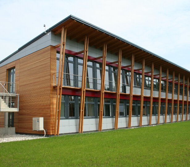 Errichtung eines 2-geschoßigen Bürogebäudes aus Holz in Niedrigenergiebauweise