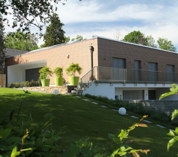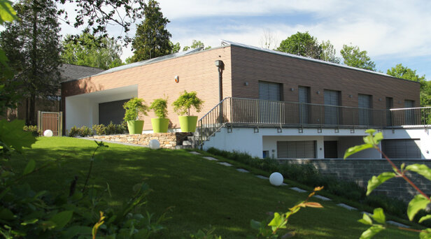 - Herstellung einer 265 m² Lärchen-Rhombusschalung inklusive Unterkonstruktion auf bauseitigem Ziegelmassivbau