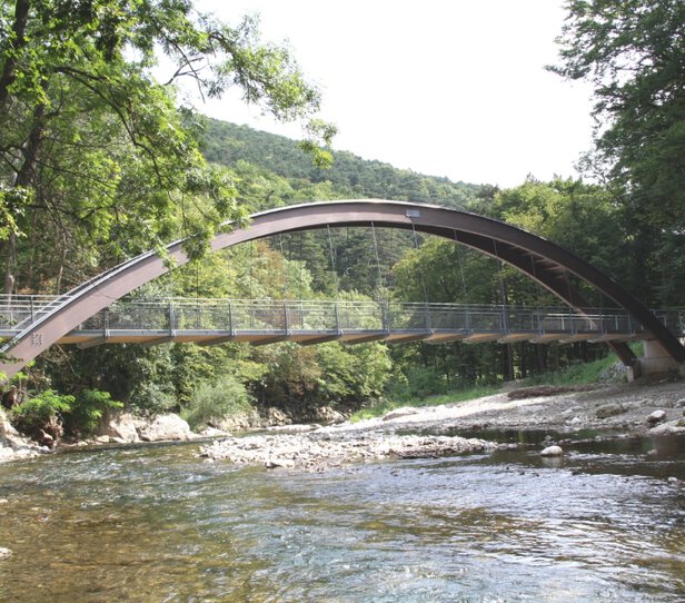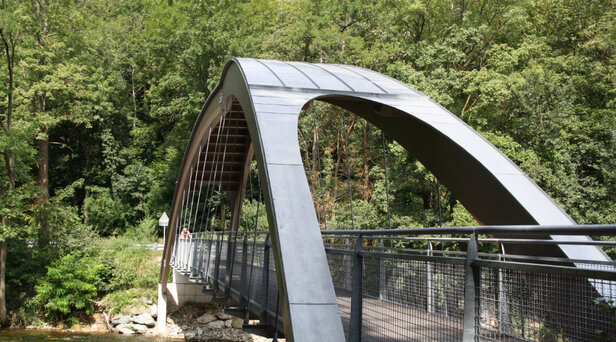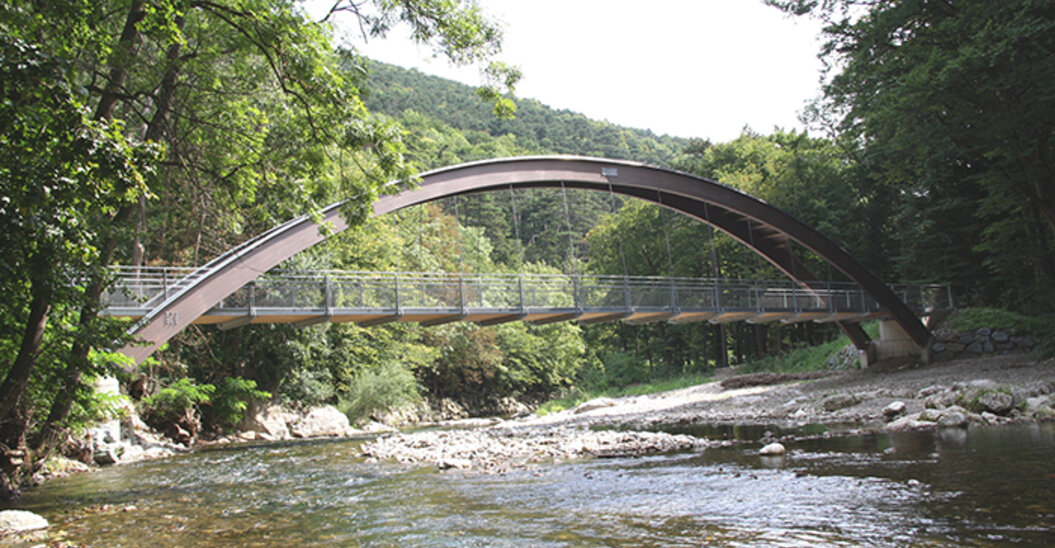 - Errichtung einer Fuß- und Radwegbrücke (NKL I) mit einer Spannweite von 40 m (Breite: 2,50 m) – Bogenbrücke mit abgehängter Fahrbahn
