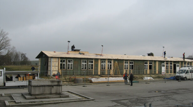 - Eingestürzte Baracke wurde mit den Bestandteilen soweit als möglich wieder errichtet bzw. mit neuen Materialien ergänzt