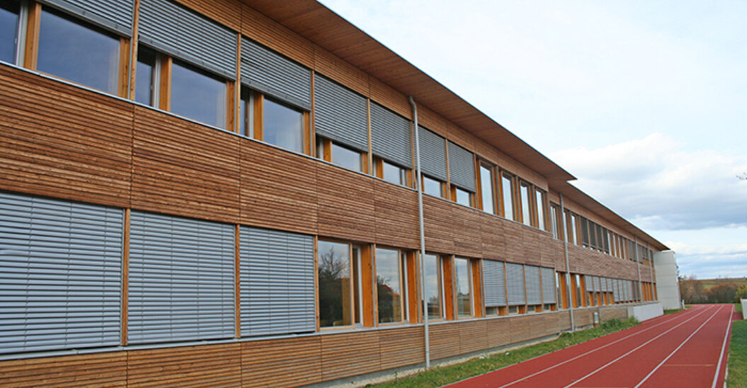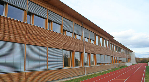 - Waagrechte Holzschalung für die Schule