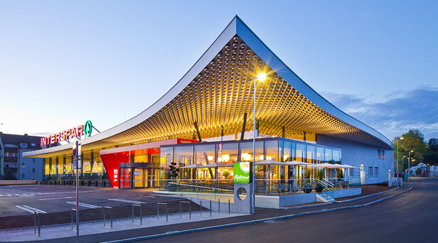 Montage der Holzunterkonstruktion für den Interspar in Amstetten