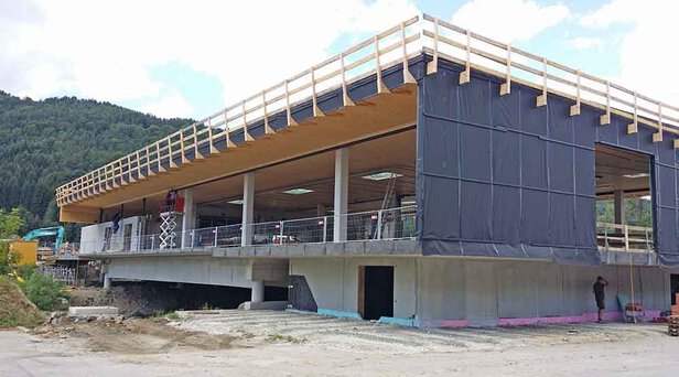 - Insgesamt 1.300 m² Warmdachelemente inkl. Foliendeckung im Werk