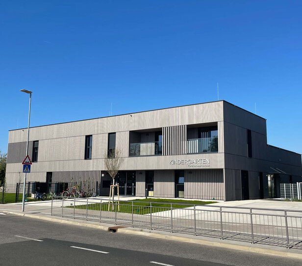 Errichtet wurde ein Kindergarten für fünf Gruppen inklusive Nebenräumen und einem Bewegungsraum. Zudem wurden Räume für Personal und Verwaltung geschaffen. Die erbauten Räumlichkeiten bieten ebenso die Möglichkeit als Musikschule genutzt zu werden.
