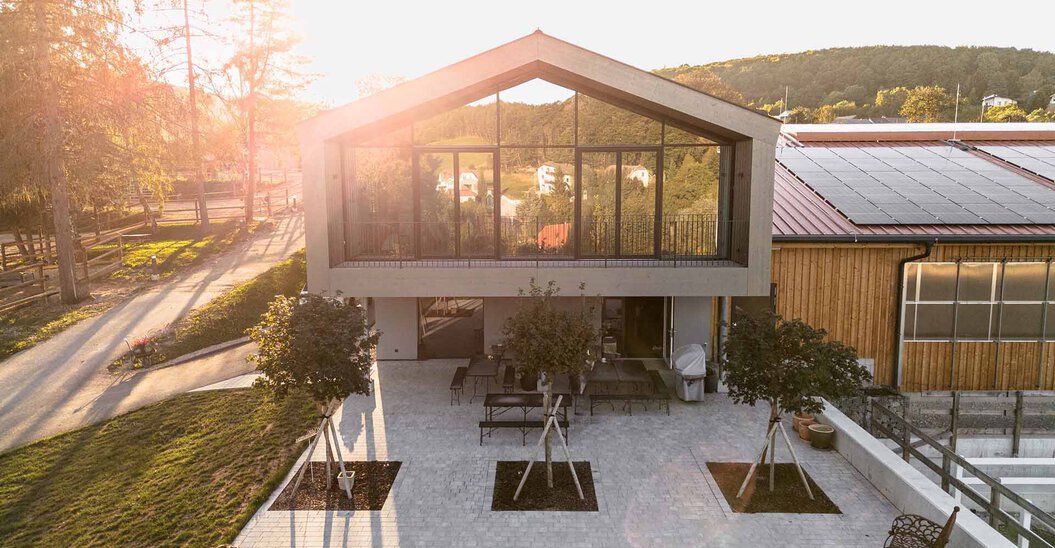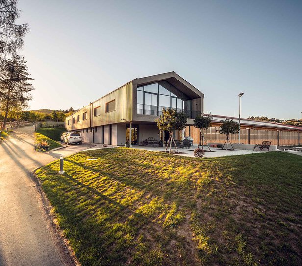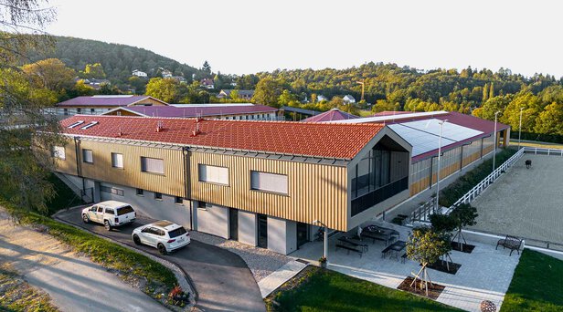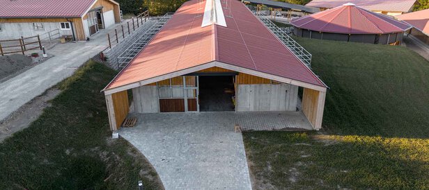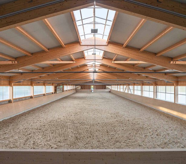 Neubau eines Pferdezentrums mit zweigeschoßigen Verwaltungsgebäude.