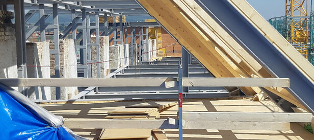 - Errichtung einer 4.300 m² Brettsperrholzdecke und 2.200 m² Riegeldecke