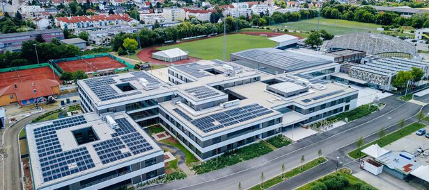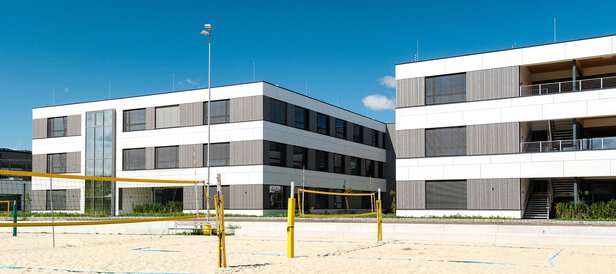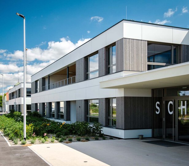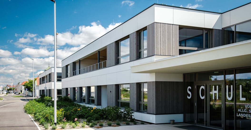 Neubau eines neuen Schulcampus in Mischbauweise (Holz- und Stahlkonstruktion). Der neue Schulcampus beherbergt 20 Volksschulklassen (inklusive Gruppenräume), neun Sonderschulklassen, Räumlichkeiten der Musikschule und der schulischen Nachmittagsbetreuung sowie eine Dreifachturnhalle. Auf dem 58.000 m² großen Grundstück werden ca. 9.200 m² von Leyrer + Graf bebaut.