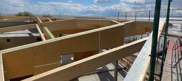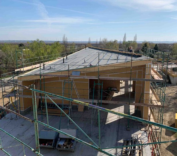- Errichtung des gesamten Obergeschoßes in Riegelbauweise