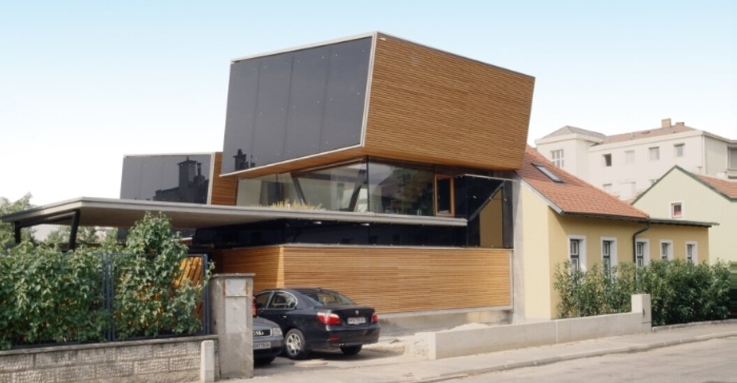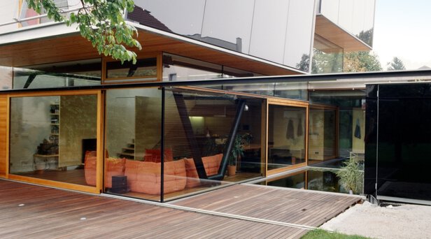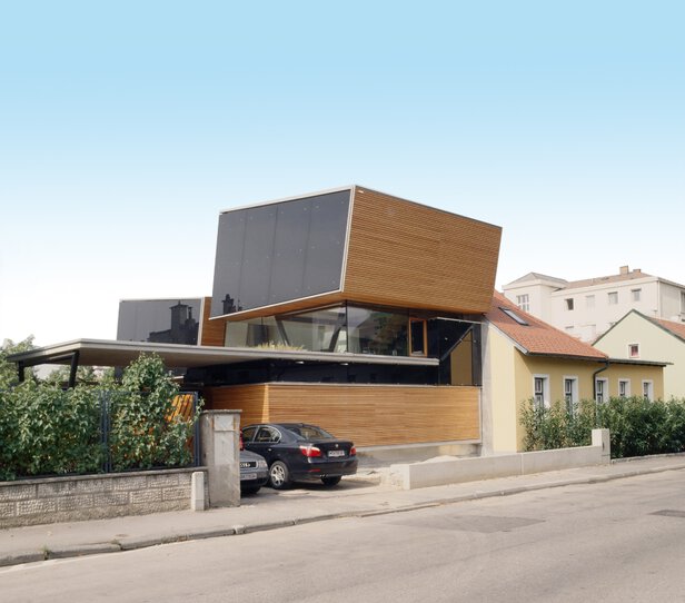 - Großzügige Verglasungen bringen viel Licht ins Innere, die auskragenden Obergeschoße schützen vor Überhitzung