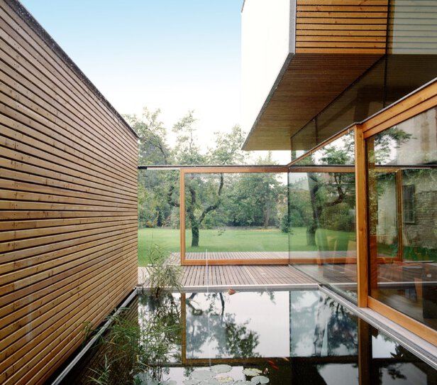 Holz wurde sowohl als Gestaltungselement als auch konstruktiv eingesetzt: