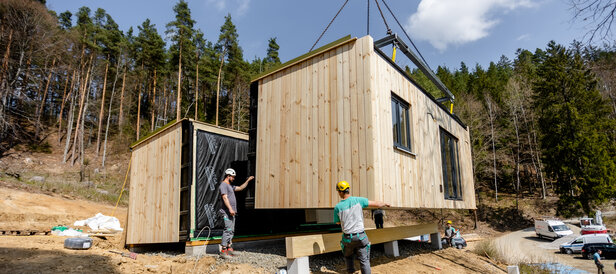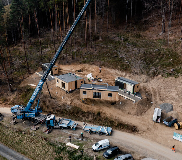 Errichtung Seehäuser am Stausee Dobra in Holz-Modulbauweise
