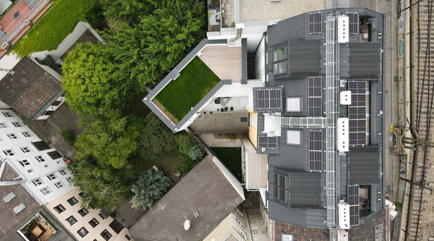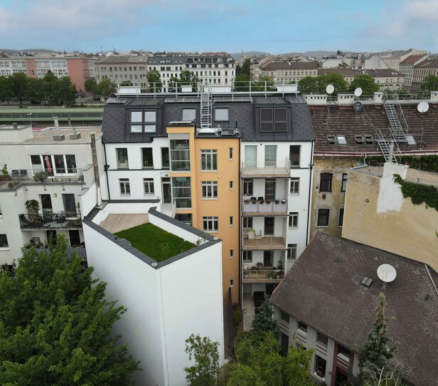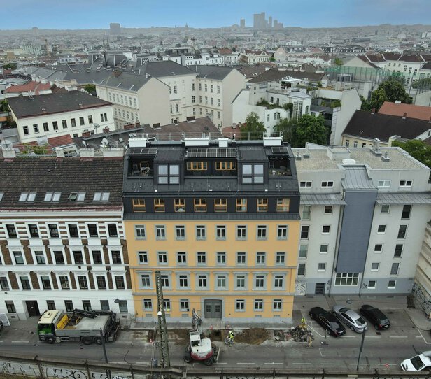 Errichtung einer zweigeschoßigen Dachaufstockung inmitten des 15. Wiener Gemeindebezirks.