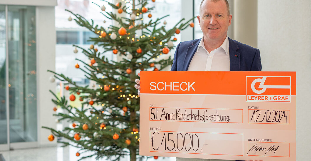 Mit einer großzügigen Spende von 15.000 Euro unterstützt auch heuer die Unternehmensgruppe Leyrer + Graf die St. Anna Kinderkrebsforschung und setzt ein starkes Zeichen für soziale Verantwortung. Die Organisation widmet sich seit Jahrzehnten der Erforschung und Entwicklung neuer Therapien für krebskranke Kinder und Jugendliche, um deren Heilungschancen nachhaltig zu verbessern.