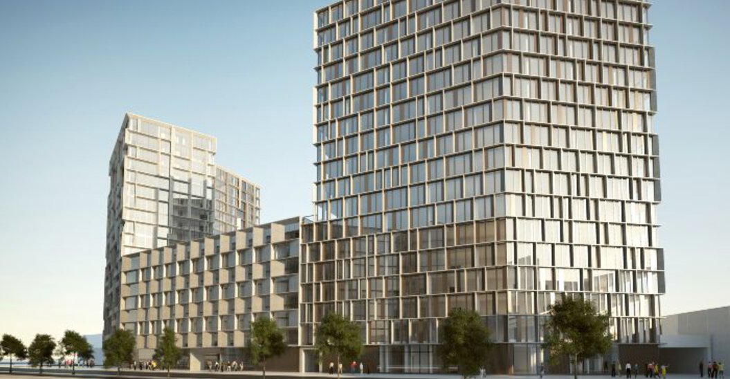 Mit den Erdarbeiten wurde bereits begonnen und Leyrer + Graf wird im Juli 2018 mit den Arbeiten für die Bodenplatte des 2. Untergeschoßes starten. Gegen Ende des Jahres werden die Arbeiten für die Untergeschoße abgeschlossen sein, sodass im Anschluss mit dem Bau der Türme begonnen werden kann. Geplant ist, dass die Rohbauarbeiten gegen Ende 2019 fertiggestellt sind.